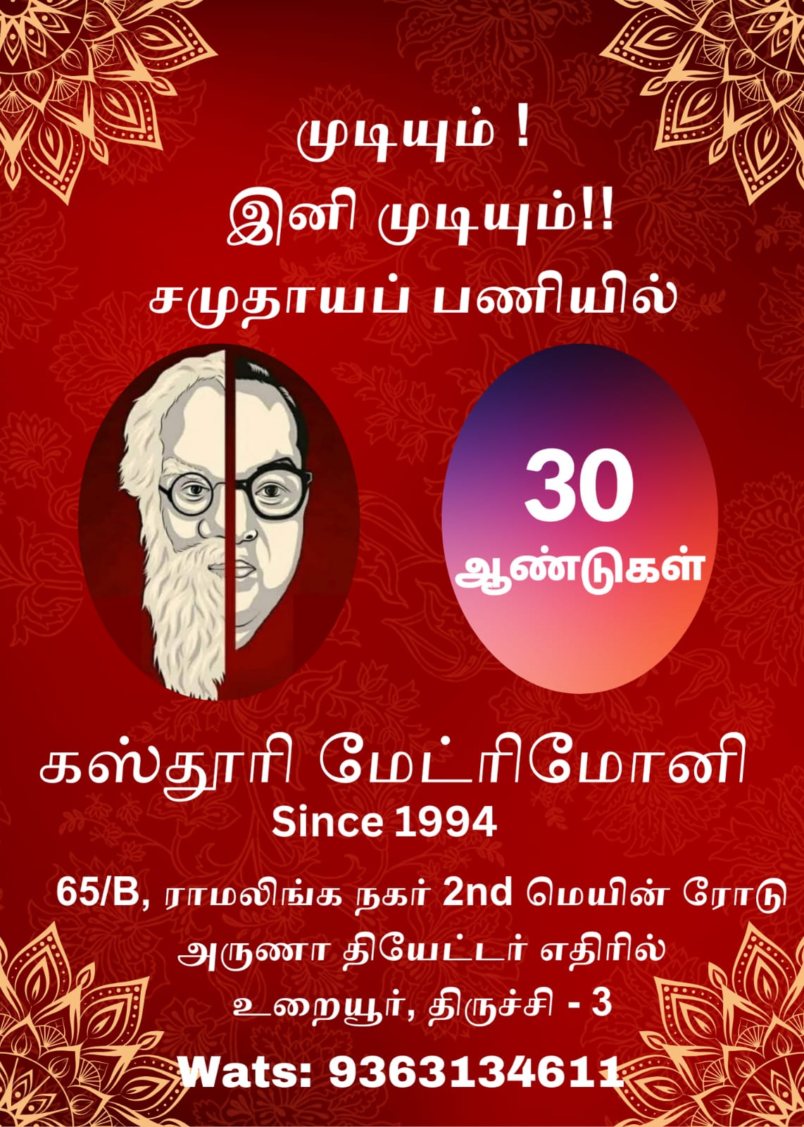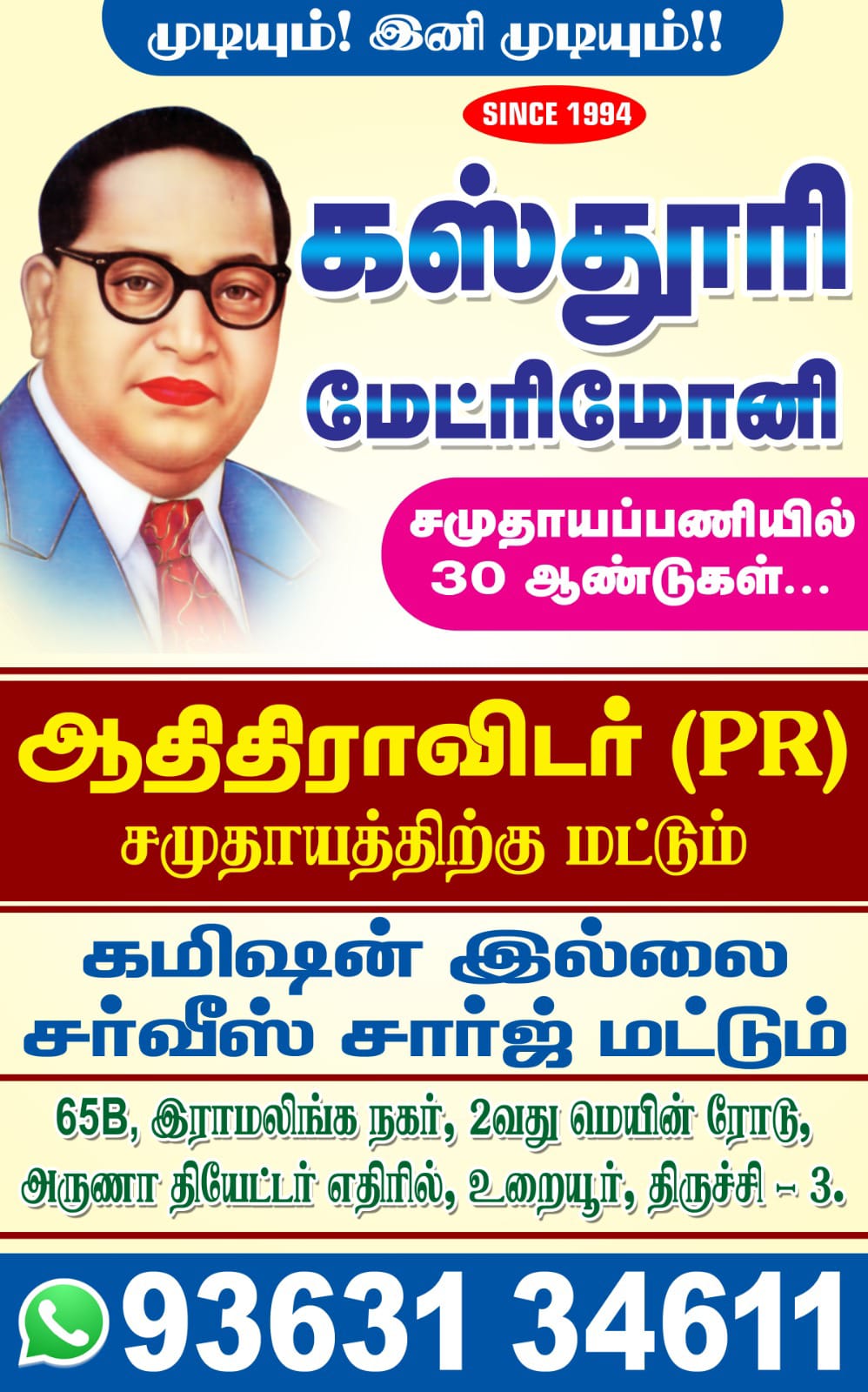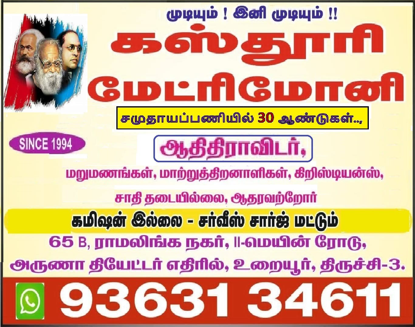 Welcome to Kasturi Matrimony, where we bring over 30 years of expertise in creating meaningful and lasting connections. Our journey began with a mission to offer a trusted matrimonial service exclusively for the Aadhithiravidar community, and we have proudly stayed true to that commitment.
